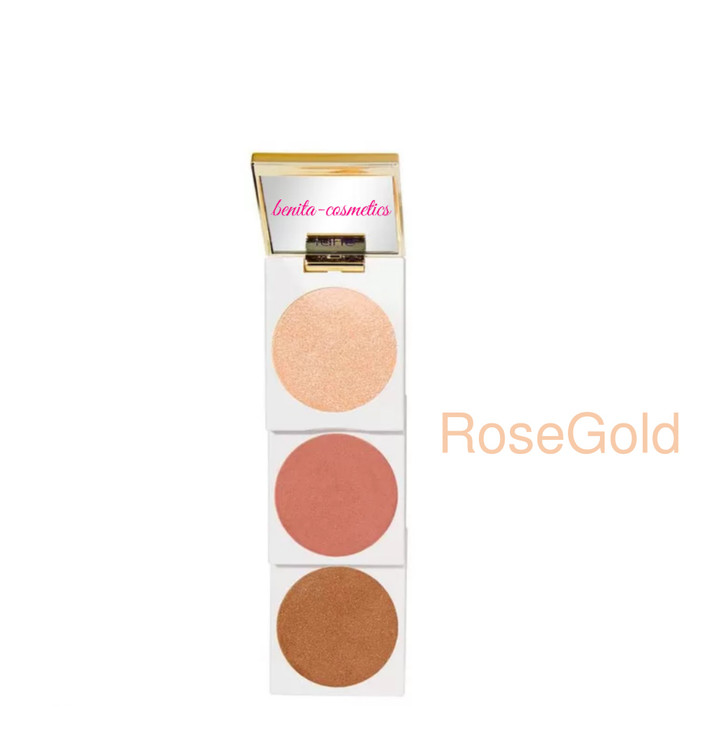 🔅پالت Rose Gold دارای یک هایلایتر رزگلد، رژگونه هلویی و یک سایه هلویی تیره می باشد