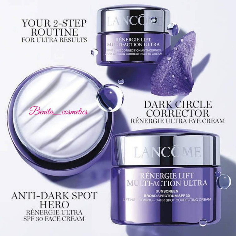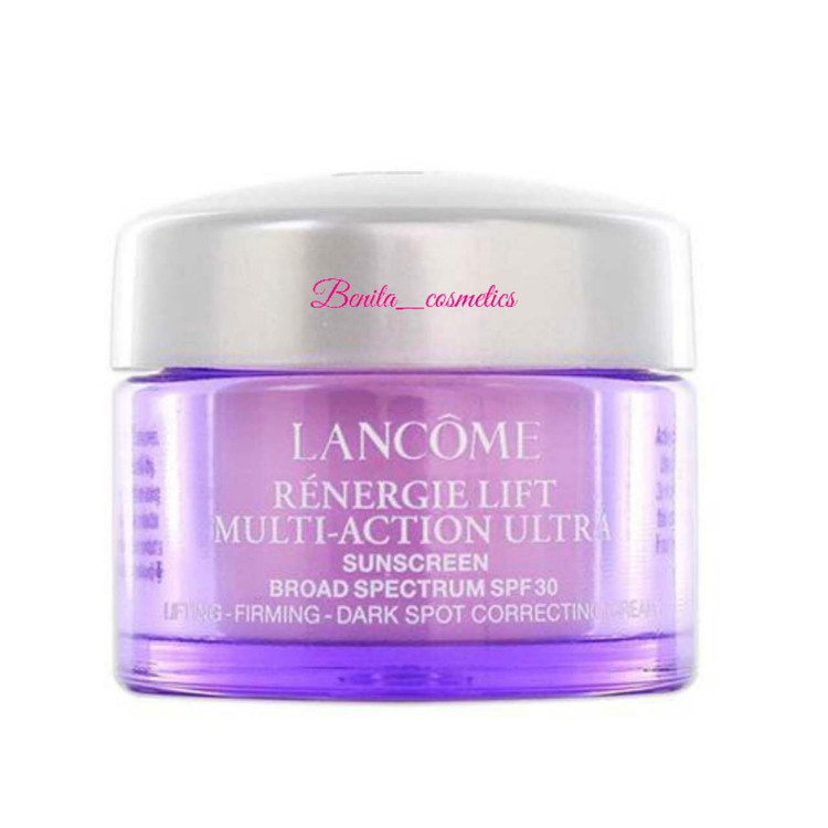 کرم ضد تیرگی رِنرجی لیفت مولتی-اکشن لانکوم دارای SPF ۳۰ و سفت کننده و لیفت کننده پوست می باشد.
